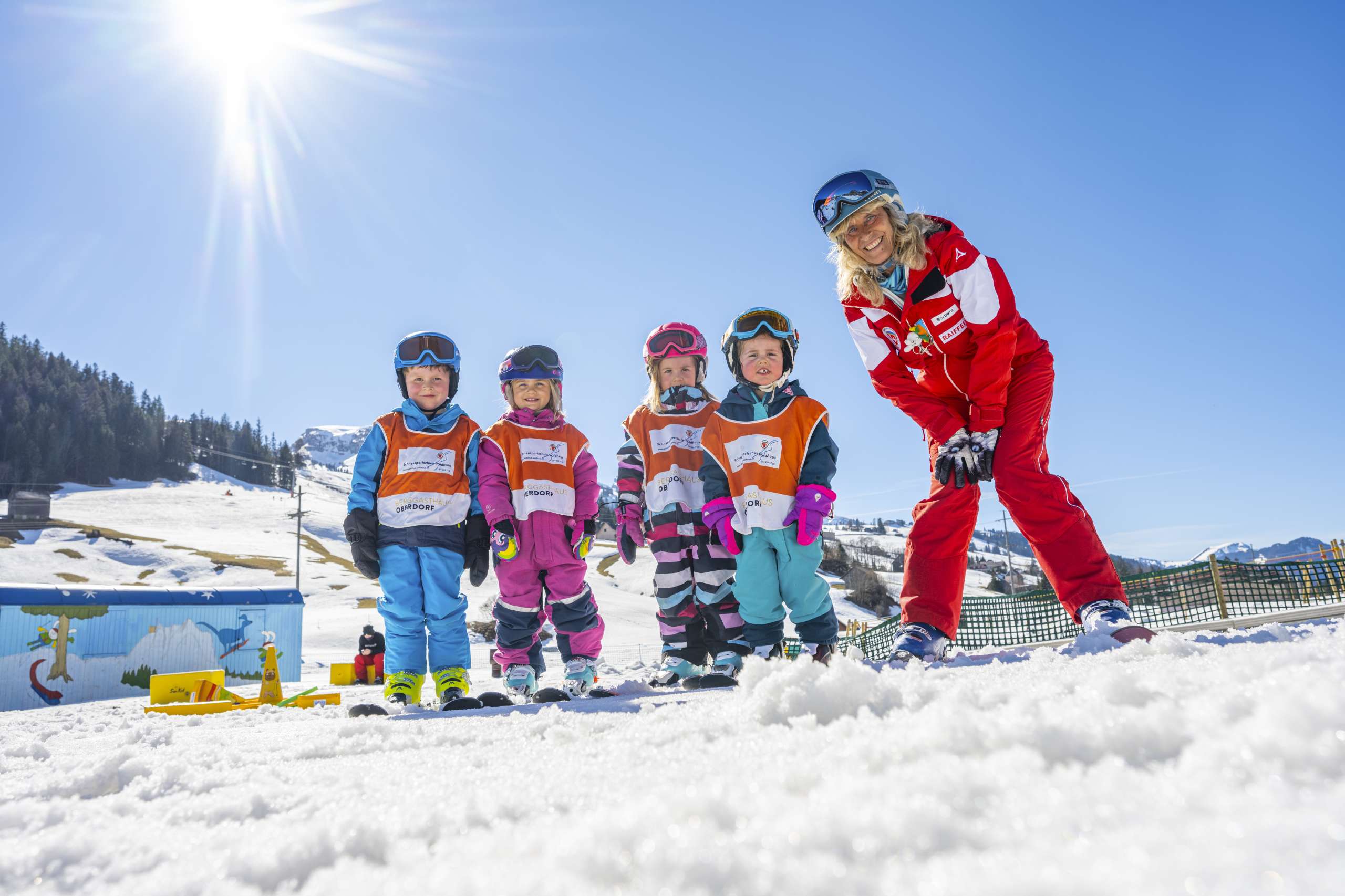 Snowli und sein Team ausgebildeter KinderskilehrerInnen sorgen dafür, dass auch die Kleinsten spielerisch Freude am Skifahren haben. Spass und Bewegung im Schnee stehen dabei im Vordergrund.